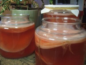 – kultura Kombuhe (kvasna gljivica)– Približno 70-100g rafiniranog bijelog šećera na litru vode